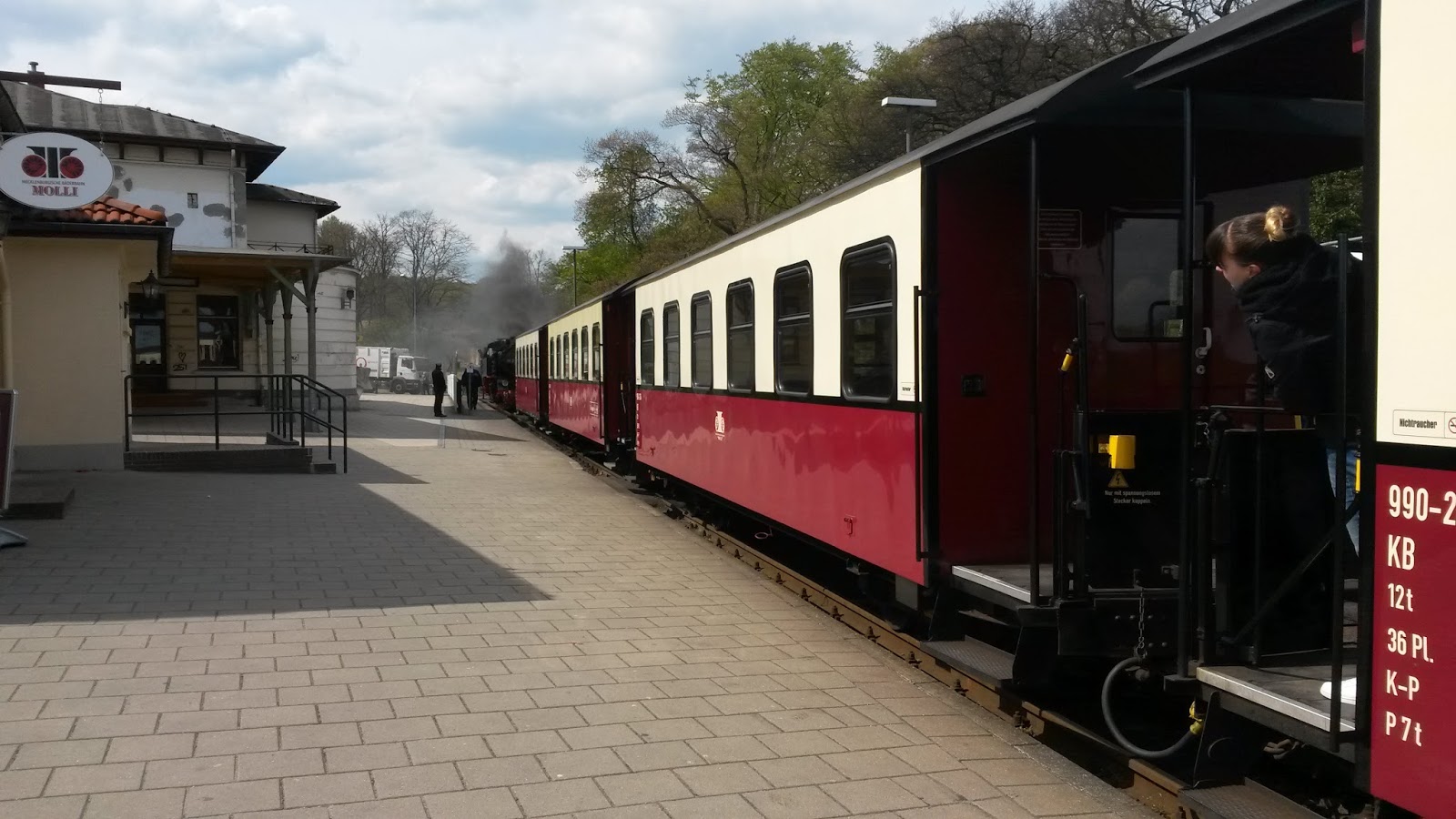 Ich bin mit einer waschechten Dampflok gefahren, ist das nicht mega cool? Von Bad Doberan aus sind mein Freund und ich mit unseren Fahrrädern bis zur Steilküste zwischen Heiligendamm und Kühlungsborn gefahren, und waren abgesehen von einem dreijährigen Jungen die einzigen, die sich auch nur ansatzweise angemessen verhalten haben. In einer Dampflok steht man draußen auf den Plattformen, streckt seinen Kopf hinaus und lässt die Haare im Fahrtwind wehen. Okay, etwas cooler wäre es noch gewesen hätte ich ein butterblumengelbes Kleid angehabt, hübsche weiße Handschuhe und ein Hütchen, aber man muss sich den Gegebenheiten anpassen. Das ist jedoch noch lange kein Grund keinen sichtbaren Spaß während der Fahrt zu haben.