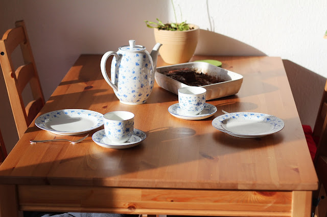 Besonders schön an unserem Essbereich finde ich ja unser Kaffeegeschirr, das hab ich nämlich von meiner Oma geschenkt bekommen und die hat es von ihrer Mutter. Ist also schon das ein oder andere Jährchen alt und trotzdem noch so schön! Blöd ist nur, dass es nicht spülmaschinenfest ist… Da ist dann Spülen angesagt 😀