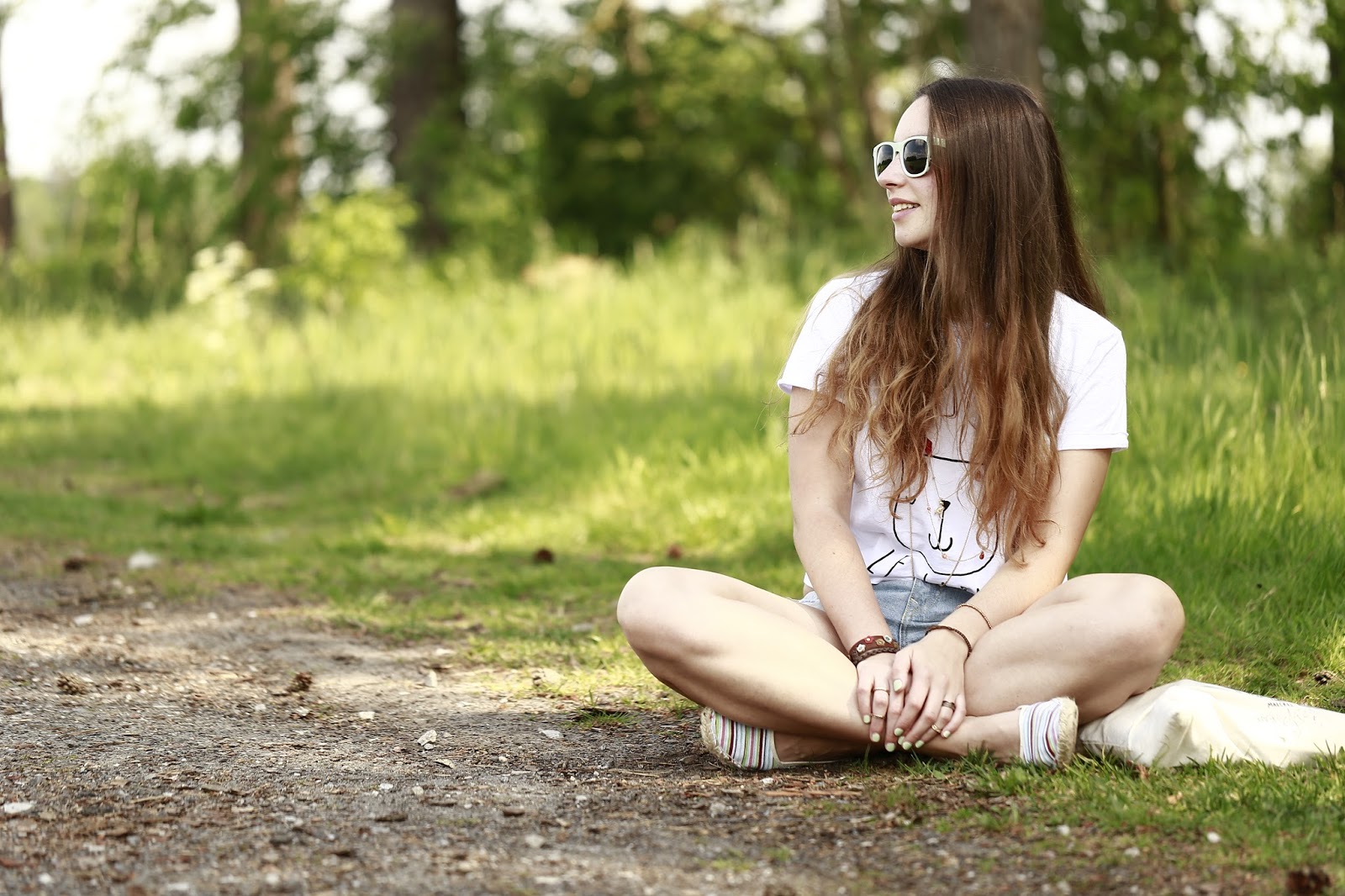 Neben dem für mich doch eher untypischen Crop Top trage ich auch noch viel Schmuck, was ich normalerweise auch eher selten tue, aber wenn das Wetter so schön ist habe ich einfach Lust mich zu behängen, einen schönen Nagellack zu tragen und durch viele Ringe noch ein bisschen mehr zur Geltung zu bringen, statt einer Kette dann doch lieber drei, und das ein oder andere Armband lässt sich doch auch noch aus meiner Schmuckbox fischen. Zum Sommer passen Accessoires halt einfach.