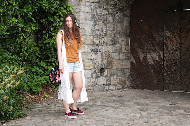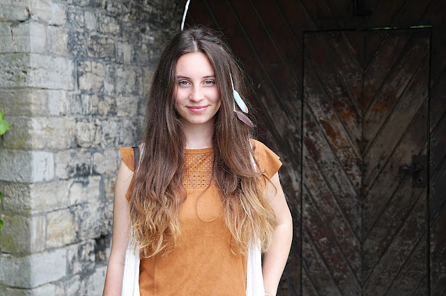 Ich bin ein absoluter Sommermensch und habe bei Sonne und hohen Temperaturen einfach direkt gute Laune, uuund ich freue mich darüber meine Sommersachen tragen zu können, das ist in Deutschland ja leider nicht allzu häufig der Fall 😀 Weil das so ist greife ich dann gerne auch mal zu ausgefalleren Stücken, wie zum Beispiel der Weste, die ihr auf den Bildern sehen könnt. Oder Federschmuck im Haar. Ich finde solche Sachen kommen nur im Sommer richtig rüber und dann macht es mir ganz viel Spaß und Freude damit herumzulaufen! Fühlt sich dann direkt ein bisschen wie Urlaub an 🙂