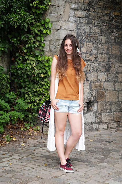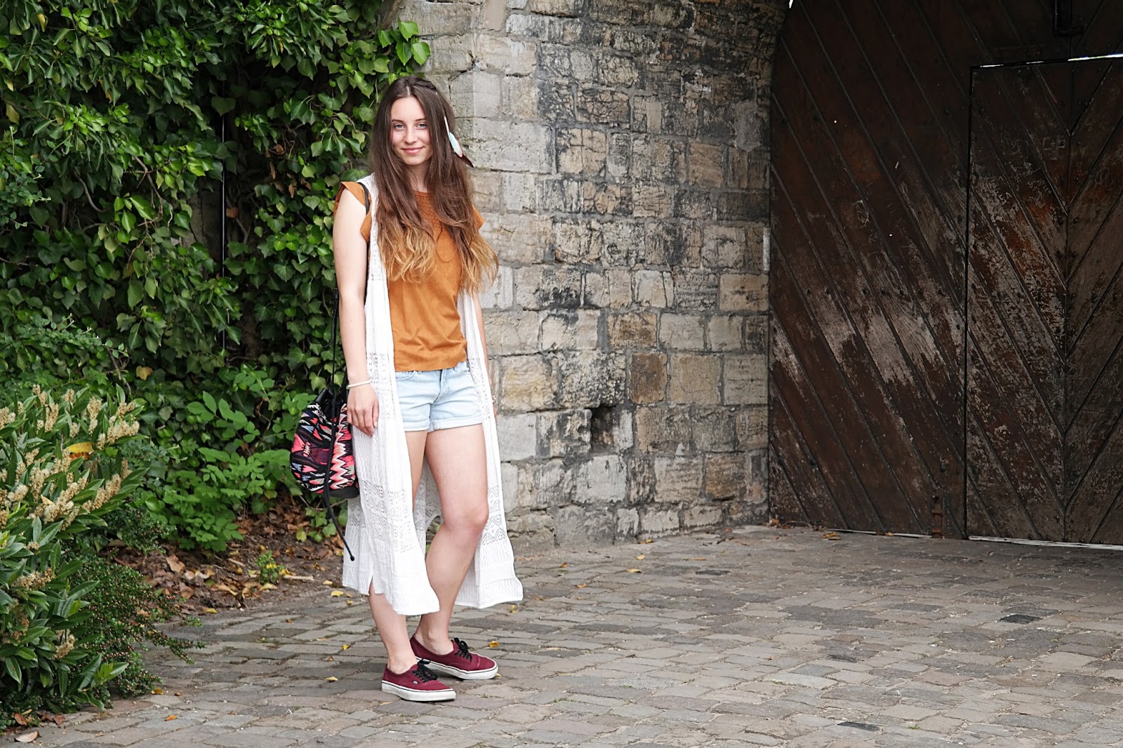 Sneaker: Vans, Shorts: H&M, Shirt: Reserved, Weste: Primark, Bag: Primark,