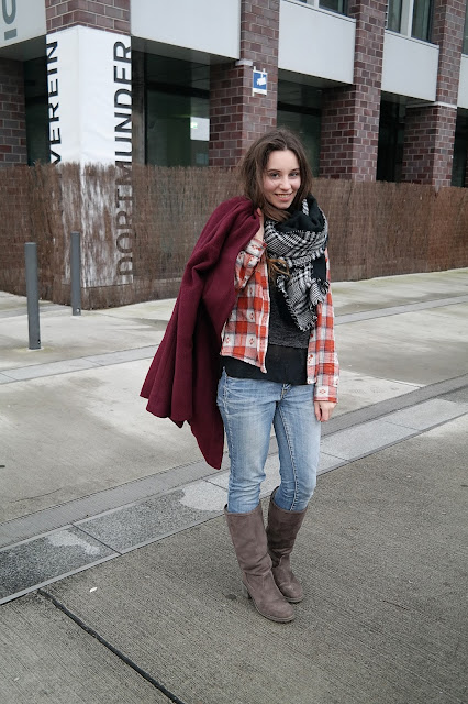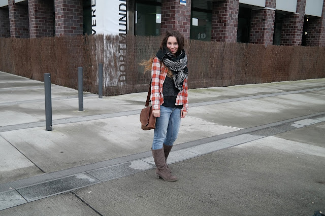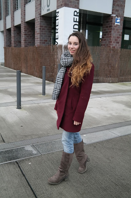 Schal: Primark, Jacke: Asos, Jeans: VeroModa, Stiefel: Deichmann
