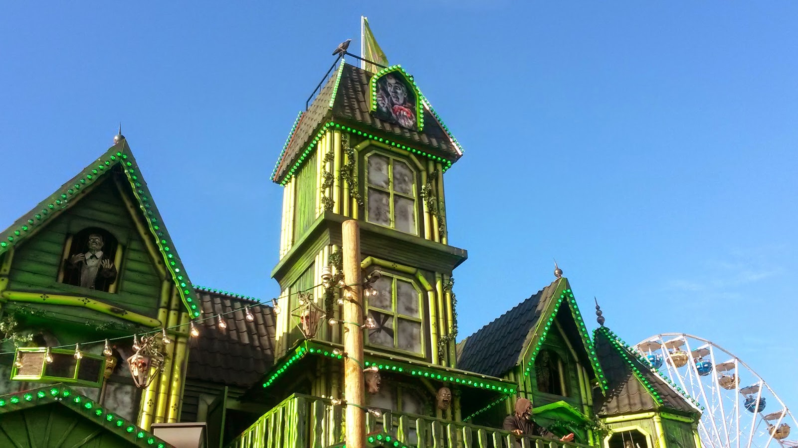 In diesem Gruselkabinett war übrigens ein kleiner Junge, des stand mit seiner Mama auf genau diesem Balkon und hat sich an den Gitterstäben festgekrallt, der wollte einfach nicht wieder rein. Bestimmt zehn Minuten hat die Mama versucht ihren Sohn wieder reinzubekommen, aber der hat nur noch mehr geschrien, bis sie ihn irgendwann richtig gepackt bekommen hat. Am Kartenhäuschen steht ja nicht umsonst Zutritt ab 10.