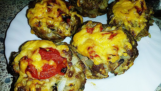 Diese Hackfleischnester habe ich mal für mich und meinen Bruder gemacht, das Rezept ist aber eigentlich für 4 Personen, da mein Bruder Tomaten nicht so unwahrscheinlich gerne isst habe ich für ihn etwa die Hälfte der Nester mit Paprika gemacht. Lasst ihr die Paprika weg benötigt ihr die doppelte Anzahl an Tomaten, ich könnte mir aber auch vorstellen, dass eine Mischung von Tomaten und Paprika auf den Nestern gut schmecken kann.