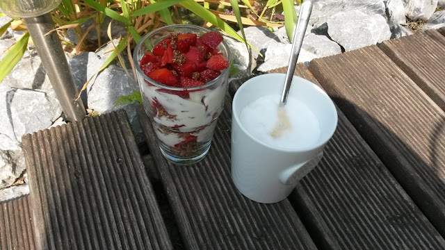 Momentan liebe ich Müsli mit allen Variationen von Quark und Früchten! Und irgendwie mag ichs momentan auch hübsch, so richtig schön Instagramlike! Und naja, zu einem perfekten Frühstück gehört natürlich auch ein leckerer Cappuccino 🙂