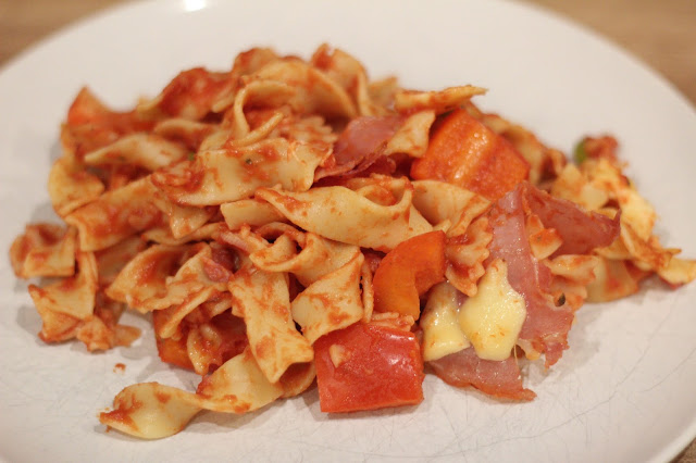 Dieses Rezept geht super schnell, ist super lecker und nun ja, was will man nach einem anstrengenden Arbeitstag noch mehr? Der krosse Schinken gibt dem ganzen noch so ein gewisses Extra, kann aber natürlich für eine vegetarische Variante auch einfach weggelassen werden.
