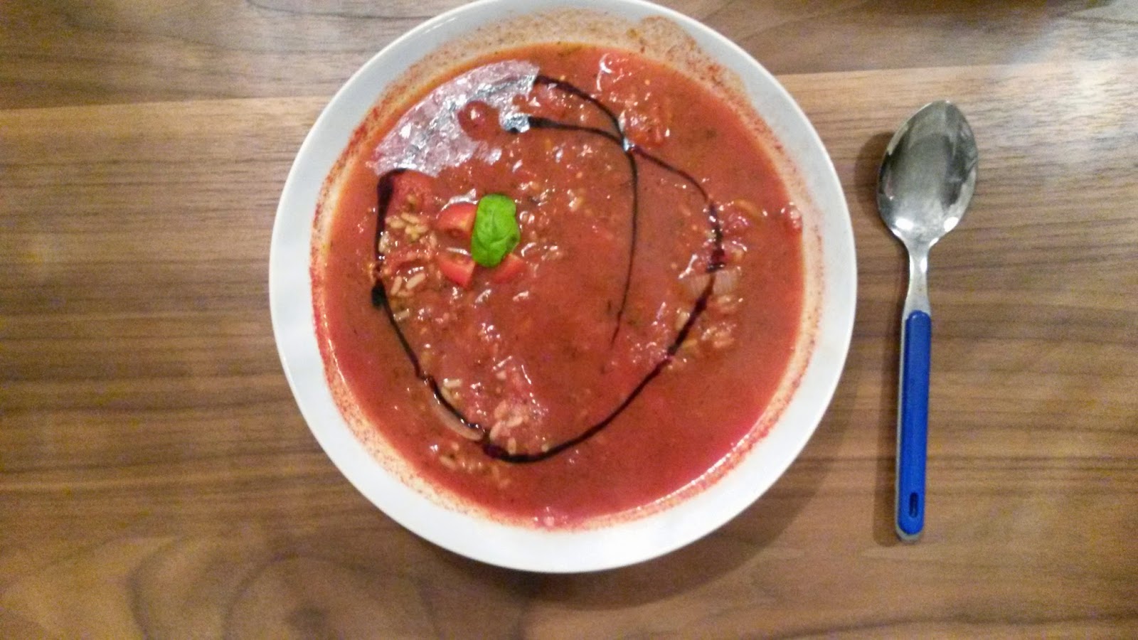 Ich muss mich hier mal outen: Ich bin ein totaler Tomatenfreak! Ich liebe die Dinger einfach und könnte mich auch gut und gerne ausschließlich von Gerichten ernähren, die aus Tomaten bestehen. Vor allem im Sommer liebe ich es in den Garten zu gehen und einfach ein paar Tomaten pflücken zu können, leider ist aber nicht immer Sommer und jetzt im Winter muss meine Tomatenaffinität etwas in den Hintergrund rücken… Aber ganz vergessen kann ich sie natürlich auch nicht, deshalb mache ich mir des öfteren mal eine Wintertomatensuppe, Tütensuppe schmeckt mir nämlich nicht allzu gut… Weil frische Tomaten im Winter aber zu teuer sind nehme ich stattdessen Dosentomaten. Den Reis könnt ihr auch weglassen wenn ihr mögt, mir gefällt sie aber mit Reis besser 🙂